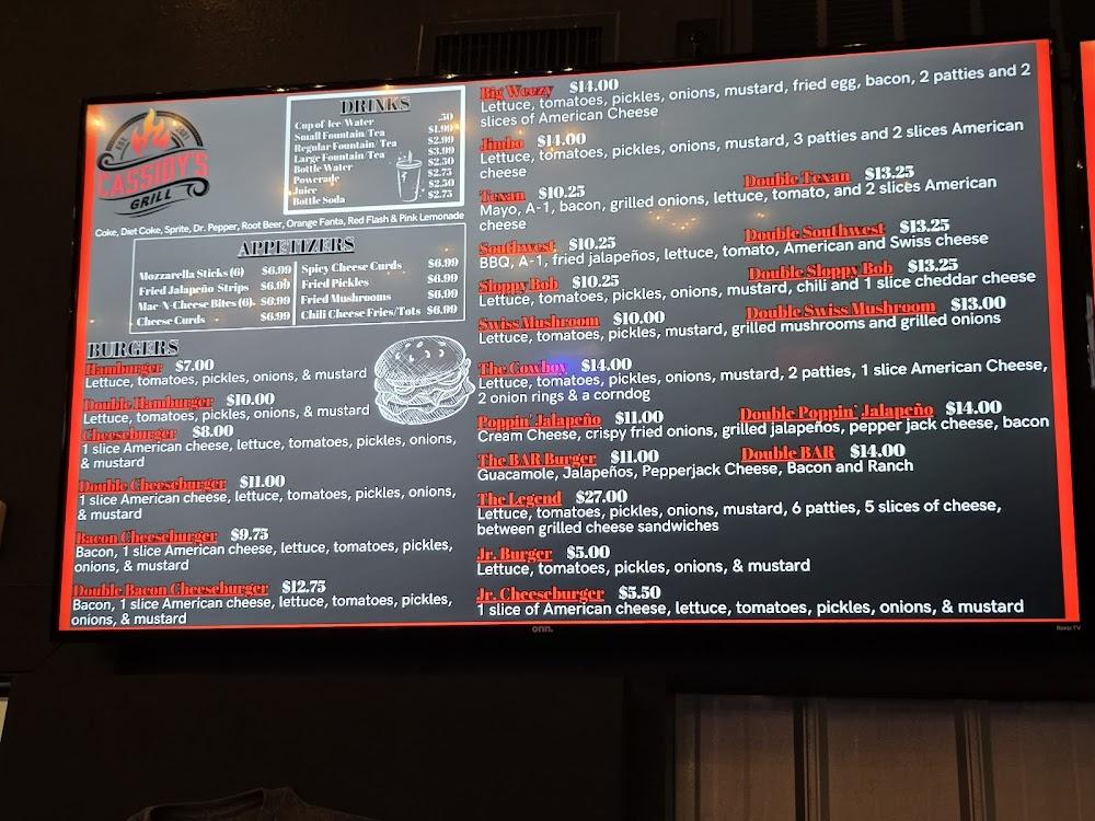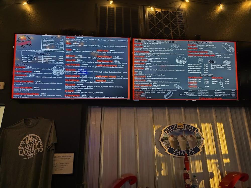 Cassidy's Grill offers a diverse menu featuring familiar American classics. Start with a burger or try a grilled cheese sandwich for a twist. Specialty burgers include the Big Weez. Sides like fries and onion rings complement meals well. Kids' options make it family-friendly. Desserts such as milkshakes round out the meal perfectly. Daily specials might surprise returning guests and keep options fresh. Embrace the flavors of Killeen with each bite and sip from the drink menu.